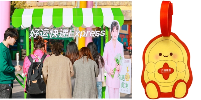 · 好运快递车:打卡兑换“好事花生行李牌”,园区人手一款,六福珠宝成功将“萌趣周边”转化为线下流动广告位!